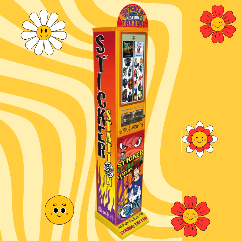 Nuovo sistema di distribuzione piatto: il tattoo o la figurina esce dalla fessura posta sopra la gettoniera.